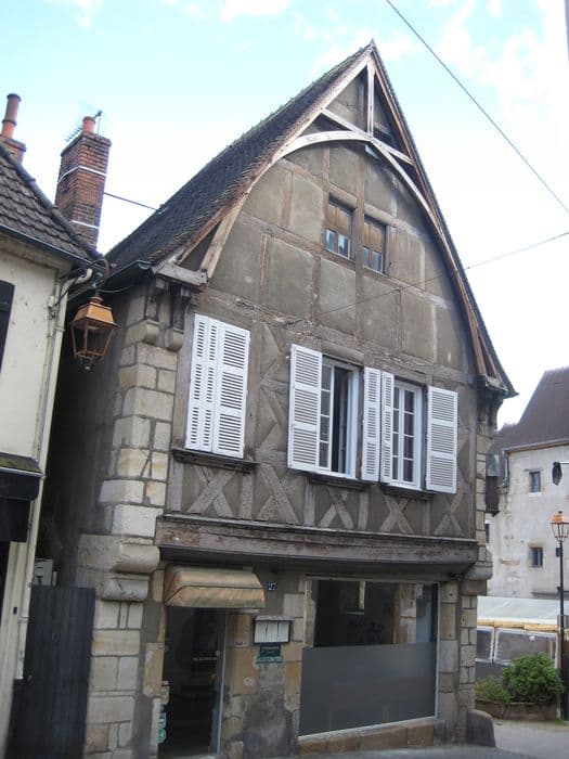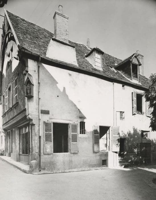 Edifice du 15e siècle, dont les deuxième et troisième niveaux sont en encorbellement. La façade présente deux angles en pierre de taille interrompus par de gros corbeaux, une porte et une devanture. Au premier niveau, ces deux percements sont surmontés d'une grosse poutre en bois, portant les colombages en X, placée en tables sous les trois fenêtres du premier étage. Au troisième niveau, le colombage est rectangulaire. Un arc ogival couronne ce pignon, reposant à ses extrémités sur des doubles corbeaux et s'inscrivant dans le triangle constitué par le toit à deux pans et le mur. La façade longitudinale présente une lucarne avec accolade du 15e siècle, une porte avec pilastre et imposte sur le linteau (16e siècle ?) et une fenêtre au chambranle chamffreiné.