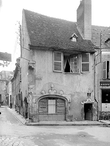 Exemple unique localement de l’architecture civile d’esprit « transition » entre art gothique flamboyant et style Renaissance. Demeure reconstruite sans encorbellement, en 1513, en blocage de galets de rivière du Cher, de pierres et de tuileau, par le maître maçon Colin Magniet, à l’initiative du maître ès arts Pierre Alexandre, son nouveau propriétaire [AM Montluçon, DD 81, 10 mai 1513, accord transactionnel]. À la suite de cet accord passé avec les consuls de Montluçon, la maison antérieure en pans de bois reposant sur trois piliers, en fort encorbellement sur la rue, qui encombrait gravement la manœuvre tournante des charrois sur la voie publique, avait été vouée à la démolition et à l’alignement, moyennant une forte indemnité. Située à l’intersection de deux artères très fréquentées, en vis-à-vis de la halle de la boucherie, la maison Alexandre voisinait au début du 17e siècle avec la demeure de Bérard Bridier, membre d’une des principales familles de marchands bouchers de la ville, à laquelle elle est aujourd’hui réunie. [S. Gibiat, « Aux origines de la réglementation urbanistique : un accord passé entre les consuls de Montluçon et Pierre Alexandre […] », Bull. des Amis de Montluçon, 3e s., n° 59, 2008, p. 177-182]. Cette demeure à usage mixte, bourgeois à l’étage et marchand au rez-de-chaussée, se trouvait adossée à l’orient à la maison des petites écoles de la ville (au niveau du n° 53 Grand’rue), construite à l’initiative des consuls en 1512-1513 [AM Montluçon, GG 35, 11 mars 1512].