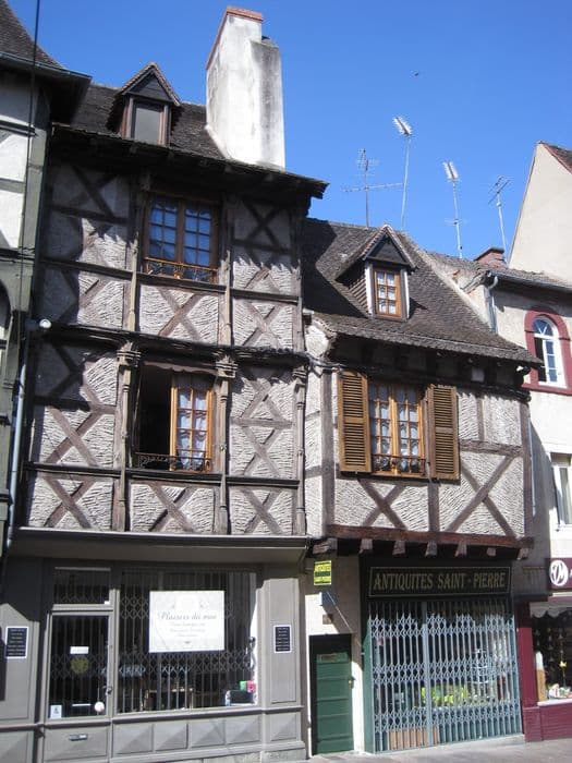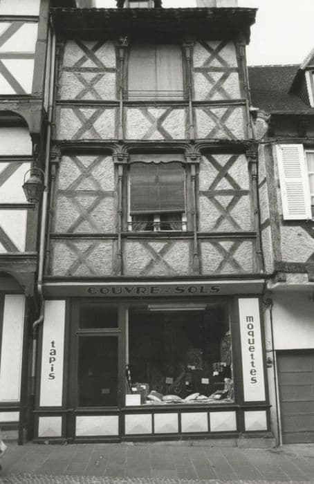 Maison de la fin du 15e siècle, avec un rez-de-chaussée en pierre et un premier étage en bois. Poteaux et sablières moulurés. Pignon agrémenté de deux aisseliers courbes, d'un faux entait et d'un poinçon. Les espaces triangulaires compris entre ces différentes pièces et la première ferme de la charpente sont trilobés. De petits motifs de bois polylobés décorent les aisseliers. Le poteau cornier porte une niche ornée d'accolades et de fleurons.