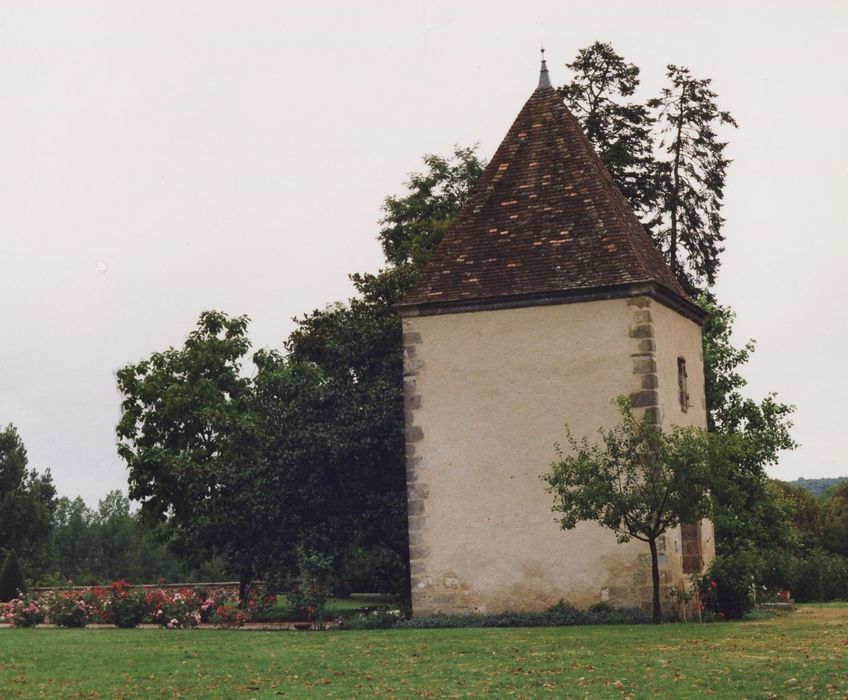 Façades et toitures, sauf ancienne chapelle attenante et deux perrons du 19S ; escalier à vis ; cheminée et plafond du salon au rez-de-chaussée ; façades et toitures de l'ancien pigeonnier (cad. AK 15) : inscription par arrêté du 14 novembre 1979