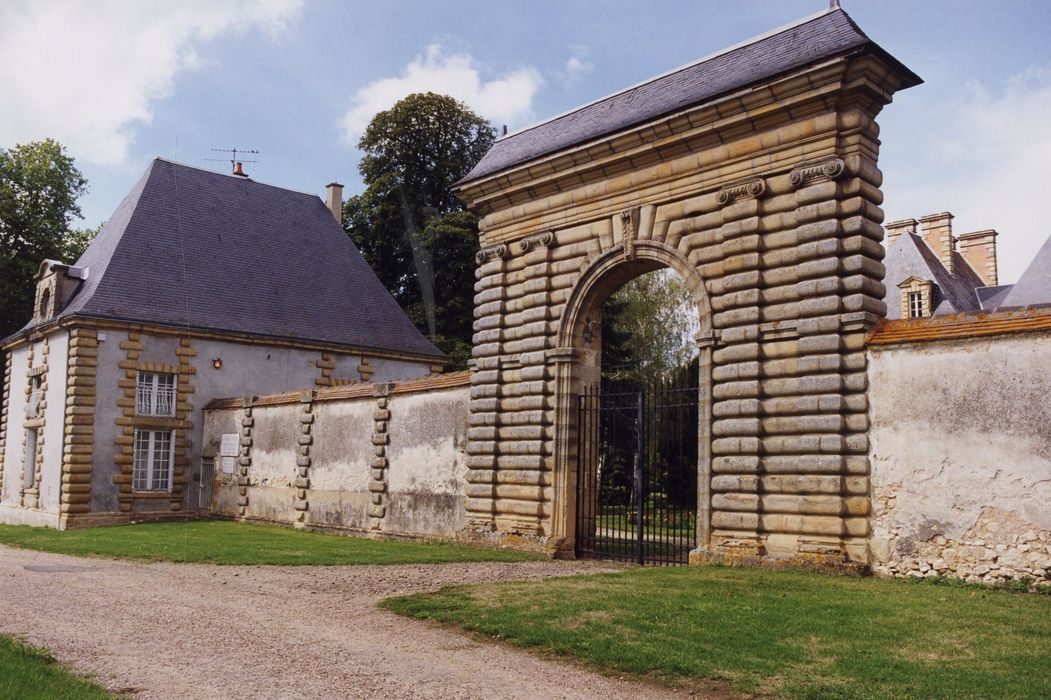 Edifice du 17e siècle, composé d'un corps de bâtiment flanqué de deux ailes formant avant-corps sur chaque façade. Chaque corps de bâtiment est couvert d'une toiture en ardoises, indépendante, en pavillon. Les façades sont ornées de chaines d'angles traitées en gros bossages à fort relief. Le château est disposé au fond d'une cour d'honneur dont l'accès s'effectue par un portail en plein cintre encadré d'une ordonnance ionique également traitée en forts bossages. De chaque côté de l'entrée s'élève un pavillon dans le style du château abritant, à gauche, des dépendances ; à droite, une chapelle établie sur plan en rotonde et couverte d'une coupole retombant sur une ordonnance classique. A droite de la chapelle s'étendent les communs avec un portail à bossages et un comble brisé.