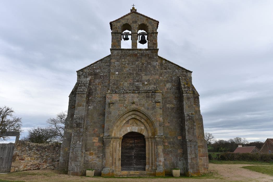 Eglise romane du 12e siècle, à une nef voûtée en berceau (tiers point) , de trois travées séparées par des doubleaux reposant sur des pilastres cannelés (influence bourguignonne) terminés en biseau au-dessus des piédroits séparant les arcatures de chaque travée. Le choeur se termine par une abside en cul-de-four, percée de trois ouvertures ornées chacune à l'intérieur de deux colonnettes. Le linteau du portail occidental a été remplacé au 18e siècle par un arc surbaissé. Au-dessus du portail, campanile pour deux cloches. Ce petit monument, dont les pilastres cannelés dénotent l'influence bourguignonne, a appartenu aux chevaliers de Saint-Jean de Jérusalem.