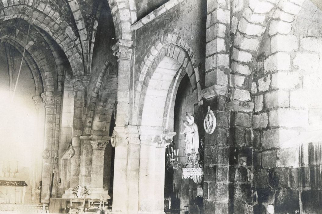 La nef date du 12e siècle ; le transept et l'abside polygonale, en grande partie du 13e. Les chapiteaux des colonnes sont décorés de crochets et de têtes aux angles. Le clocher, situé à la croisée du transept, possède sur chaque face deux baies géminées, et se termine par une flèche octogonale.