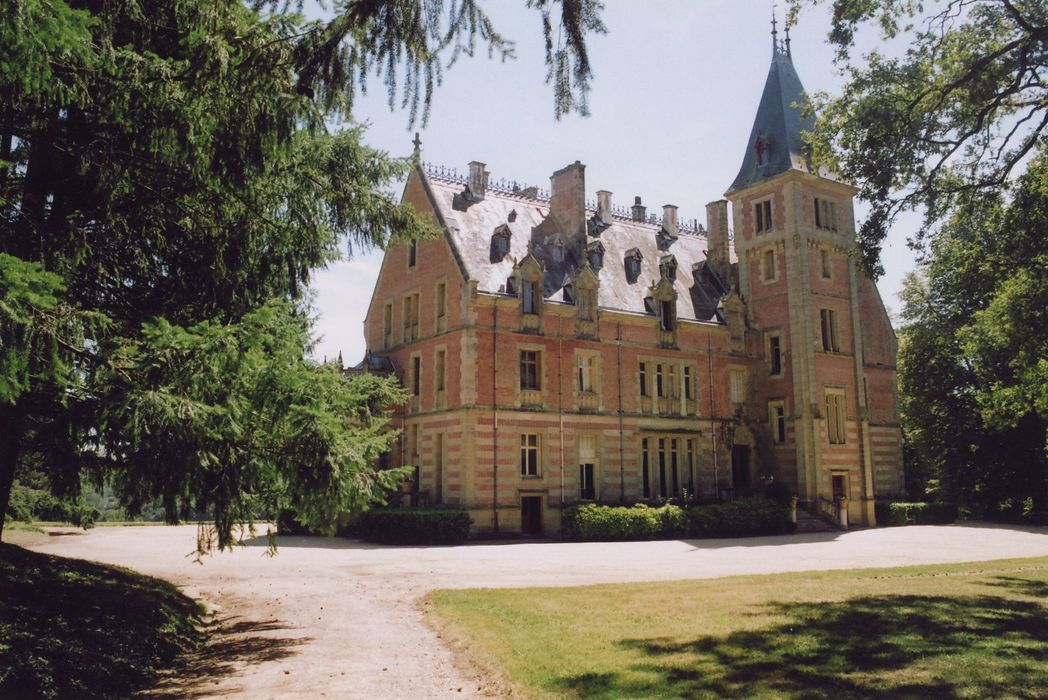 Le château a été construit entre 1876 et 1878 dans un style mêlant néo-gothique et néo-Renaissance. Un corps de bâtiment unique allongé, avec la partie sud-ouest légèrement élargie, et l'abside pentagonale de la chapelle, à l'opposé, sur la partie gauche de la façade latérale. Sur la façade principale, une échauguette forme l'angle avec la façade latérale, s'élevant à la hauteur des premier et second étages. Celle-ci se termine en encorbellement vers le bas et est coiffée d'un toit en poivrière. Le parti décoratif adopté pour cette façade est le même que celui des châteaux dits "Louis XIII" : un jeu de couleurs entre la brique, la pierre et l'ardoise. La partie droite de cette façade est occupée en son rez-de-chaussée par la chapelle, marquée par la présence de trois fenêtres terminées par un arc ogival surmonté d'une archivolte retombant sur des chapiteaux à feuillages. L'abside s'orne d'un balcon aux balustres séparés par des arcs gothiques. Aux quatre angles supérieurs de ce balcon s'élèvent quatre pinacles, et aux quatre angles inférieurs quatre gargouilles. La façade opposée à la façade principale présente une porte surmontée d'un tympan limité par un arc gothique arrondi, orné d'un pinacle et de crochets représentant des feuillages stylisés et retombant sur des chapiteaux formés de motifs végétaux. A l'intérieur, la galerie d'entrée possède un plafond à la française renforcé de tringles de fer ; une cheminée imitant les cheminées médiévales, avec un manteau très élevé ; quatre portes de deux panneaux ornés d'une frise de médaillons quadrilobés, le tout sous une sorte d'archivolte moulurée retombant sur des chapiteaux ornés de feuillages. L'escalier à vis qui permet d'accéder au premier étage est compris dans une cage aux arcs en plein cintres et aux piliers massifs visiblement d'inspiration médiévale. Il en est de même pour la rampe, aux balustres séparés par des arcs en tiers-point outrepassé. Cet édifice est un pastiche à la fois du style gothique et du style Louis XIII. Sa construction en fait un témoignage de l'architecture romantique en Bourbonnais.