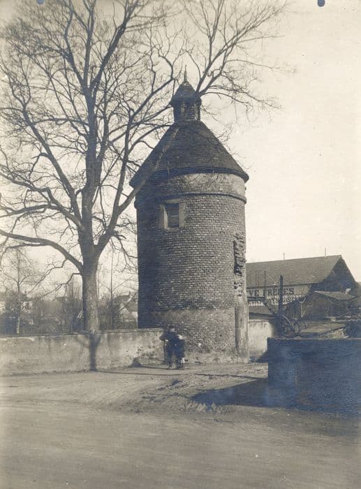 Tour, vestige d'un château du 17e siècle. Ses briques sont apparaillées en gros losanges tracés en briques noires sur briques rouges.