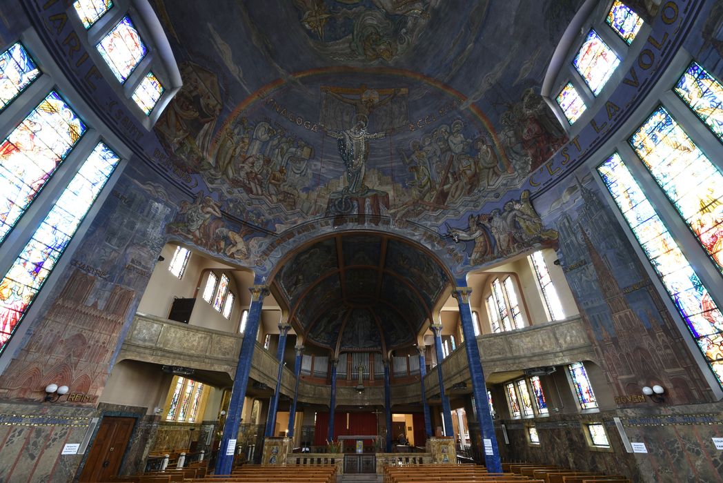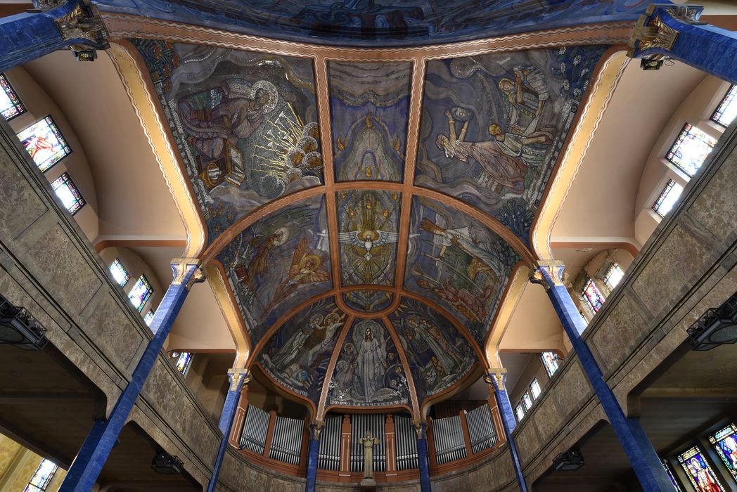 L'église Saint-Blaise est construite à la place de l'ancienne basilique mérovingienne Sainte-Croix, détruite au 10e siècle et reconstruite au 12e. Au 16e siècle, la chapelle Saint-Michel devient l'église Saint-Blaise. Elle est agrandie de 1672 à 1714. Construite pour répondre aux besoins des riches curistes, abritant la Vierge noire, Notre-Dame des Malades, qui fait l'objet d'un pèlerinage, s'avère trop petite. Antoine Chanet et Jean Liogier construisent de 1925 à 1931 la nouvelle église Notre-Dame-des-Malades, accolée à léglise Saint-Blaise et communiquant avec elle par le déambulatoire. Surmontée dune immense coupole revêtue de cuivre qui couvre une nef circulaire, elle est construite en béton armé. Son clocher carré, haut de 67 m, nest achevé quen 1956. Le décor intérieur, réalisé par les frères Mauméjean, surprend par la richesse des matériaux employés (chancel en marbre et acier, autel et ambons en onyx, stalles en acajou) , la qualité de leur mise en uvre (mosaïque, marqueterie de bois et démail) et la modernité des lignes et du graphisme évoquant lArt déco. Le choeur est couvert d'une voûte en berceau continu ornée de mosaïques illustrant les sept dons du Saint-Esprit. Les piliers à chapiteaux sont revêtus de stucs peints façon lapis lazulis. La coupole est ornée d'une mosaïque qui illustre différents épisodes de l'histoire sainte autour de la représentation de la Trinité. La chapelle des fonds baptismaux est également ornée d'une mosaïque représentant le baptème de Clovis.