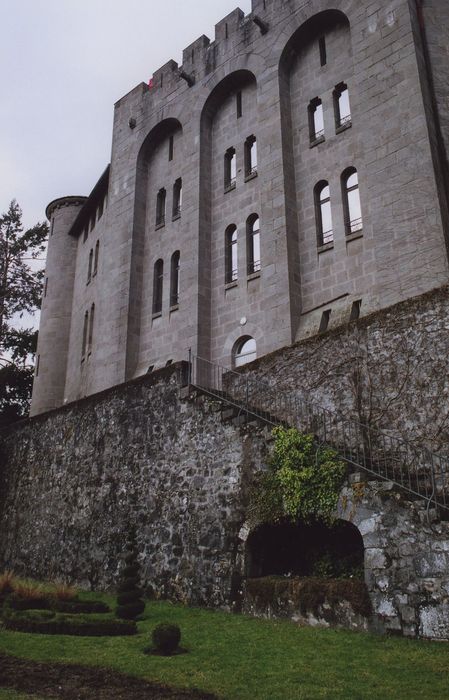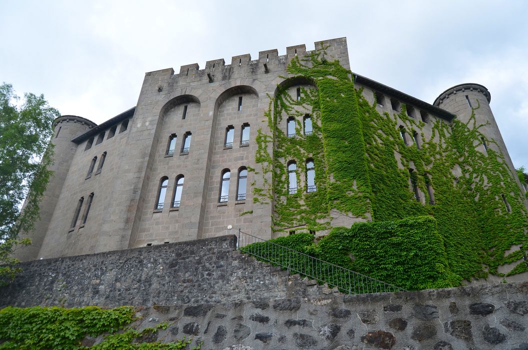 Au 9ème siècle, un premier château composé de bâtiments et d'enceinte en bois dressait ses élévations sur un tertre situé au-dessus de la vallée. Une petite agglomération vit le jour sur la pente sous le château ainsi qu'une petite église Saint-Clément. En 894, l'abbaye Saint-Pierre est fondée par le fils et désormais seul occupant du château Saint-Etienne. C'est autour de cette abbaye que naîtra la future ville d'Aurillac. Très pieux, il légua, à sa mort, sa demeure et une partie de ses possessions aux moines de son abbaye.£Devenue résidence de l'Abbé, le château fut l'objet de divers remaniements, voire reconstructions en conséquence des dévastations et révoltes auxquelles il fut exposé. En 1569, Mgr de Noailles, abbé d'Aurillac et évêque de Saint-Flour, initia une nouvelle reconstruction suite aux ravages menés par les Huguenots. L'oeuvre fut réalisée sur les bases d'un nouveau plan, au-devant du donjon demeuré intact avec son chemin de ronde à mâchicoulis. Ce château, avec ses tours rondes coiffées en poivrière et au donjon réduit de 12 mètres, fut vendu comme bien national au cours de la Révolution. Suite à un incendie en 1868, l'architecte Juste Lisch fut chargé de rebâtir le château et de lui donner son aspect actuel. Donnant sur la ville, on distingue une haute façade à arcatures dominée par le donjon. Cette partie abrite actuellement le Centre Permanent d'Initiation à l'Environnement. Côté esplanade, est implanté un bâtiment en longueur semblable à une caserne. Cette partie est aujourd'hui occupée par le Musée des Sciences de la ville d'Aurillac.