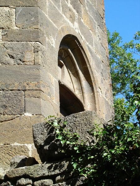 Château du 15e siècle, en partie démantelé en 1628. Le donjon subsistant paraît avoir constitué l'essentiel du château. Cette construction présente un plan rectangulaire avec, au milieu de la façade sud-ouest, une tourelle à trois pans coupés renfermant l'escalier à vis accédant aux trois étages. Le rez-de-chaussée, surélevé au-dessus d'un sous-sol voûté en berceau, est divisé en deux pièces voûtées d'ogives profilées d'un filet encadré d'un cavet de chaque côté. Ces nervures retombent à pénétration dans les angles à partir d'une clef circulaire sculptée d'un écu. Chacune de ces pièces possède une vaste cheminée. La plus grande salle servait de cuisine. Une porte au linteau orné de moulures prismatiques dont les extrémitész pénètrent à la partie supérieure des piedroits moulurés en quart de rond, fait communiquer chaque pièce avec la cage d'escalier. Les embrasures des fenêtres comportent des bancs. A chaque étage se retrouve la même disposition, avec quelques différences : les salles sont couvertes d'un plafond de bois ; les pièces du haut ne possèdent pas de cheminées. L'escalier débouche à sa partie supérieure sur le chemin de ronde percé de mâchicoulis et porté en encorbellement sur une rangée de corbeaux. Il est percé vers les angles d'archères. Une hotte surmontée d'un tuyau d'évacuation forme comme une cheminée en plein air.