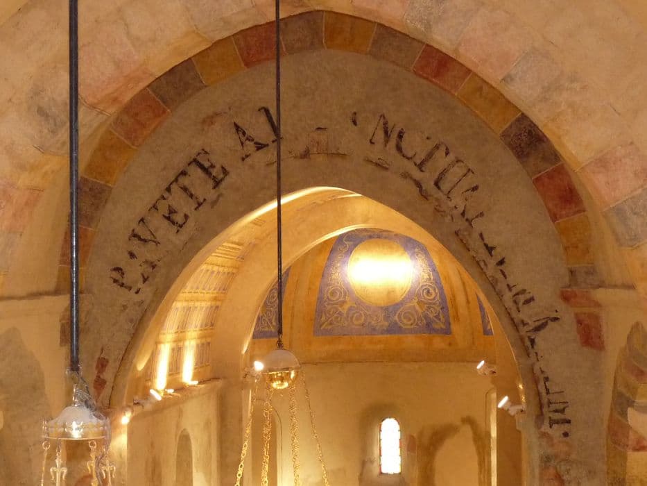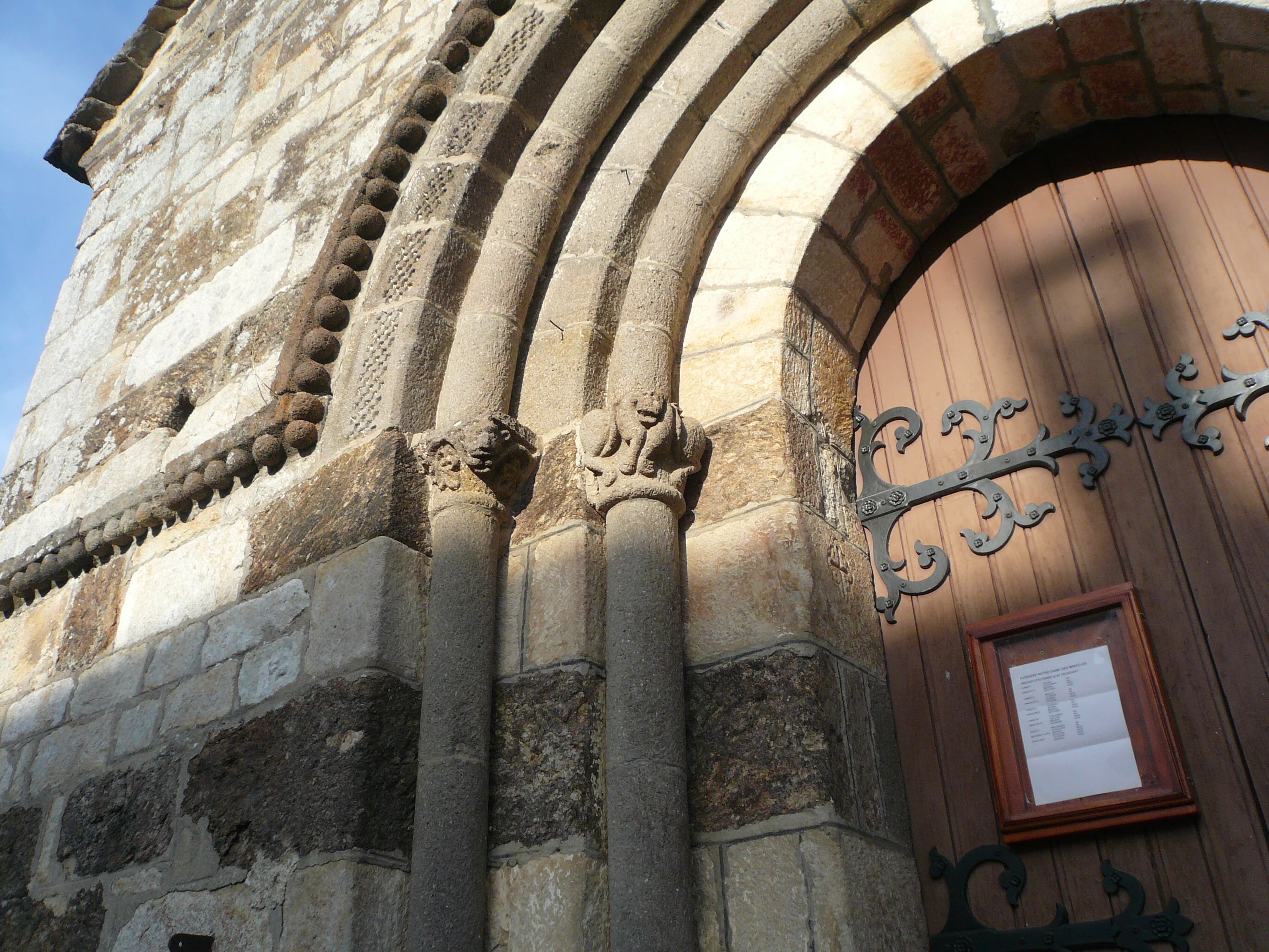 Eglise romane constituée d'une seule nef avec un choeur en cul-de-four orné. Au 15e siècle, deux petites chapelles ont été ajoutées pour former un genre de transept. A une époque plus récente, la même disposition fut reprise en doublure. Le porche occidental est souligné par un bandeau décoré. La fenêtre centrale de l'abside est couverte d'un linteau monolithe en forme d'arc.