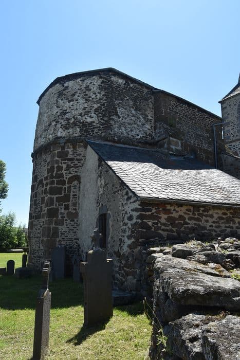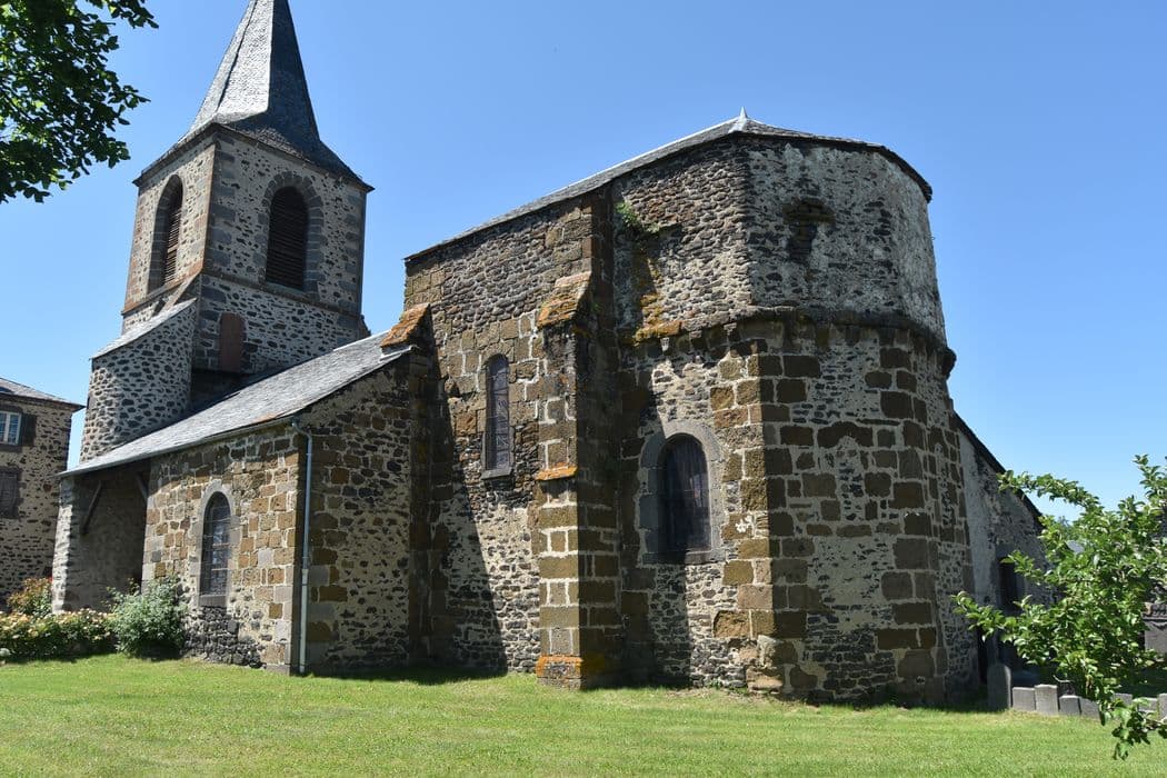 Edifice de style roman auvergnat du 11e siècle. Nef avec un transept sur lequel ouvre l'abside en cul-de-four. Cette abside est pentagonale à l'extérieur. Le transept est voûté par une coupole rectangulaire sur trompes. Deux chapelles du 15e siècle flanquent la nef.