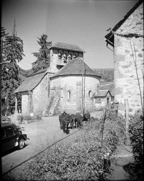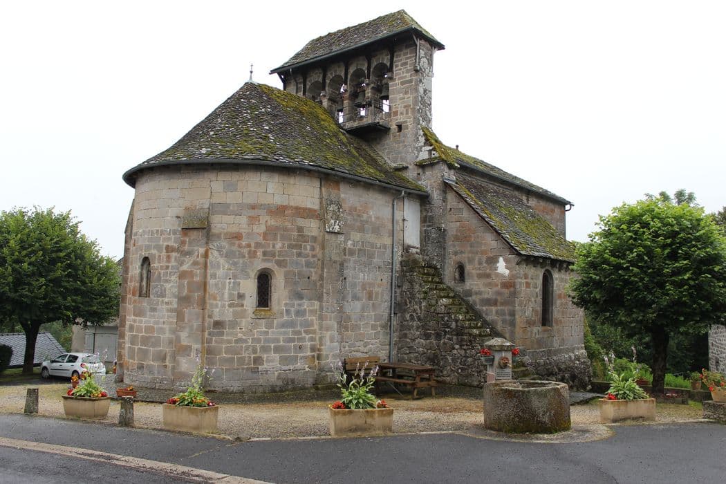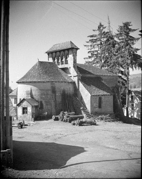 Eglise du début du 12e siècle. L'abside est voûtée en cul-de-four reposant sur cinq arcatures dont les colonnettes sont ornées de chapiteaux sculptés. Le choeur est voûté en berceau plein cintre. L'arc triomphal est formé de deux rangs de doubleaux à boudins reposant sur des colonnettes dont les chapiteaux et abaques sont sculptés. La nef était composée de trois travées voûtées en bois. Au 14e siècle, deux chapelles furent ajoutées et la nef transformée en deux travées à voûtes nervées. Le portail de la façade sud est ornée de statuettes primitives. Un porche du 15e siècle abrite ce portail. A la même époque, un clocher mur de quatre arcades fut élevé sur l'arc triomphal.