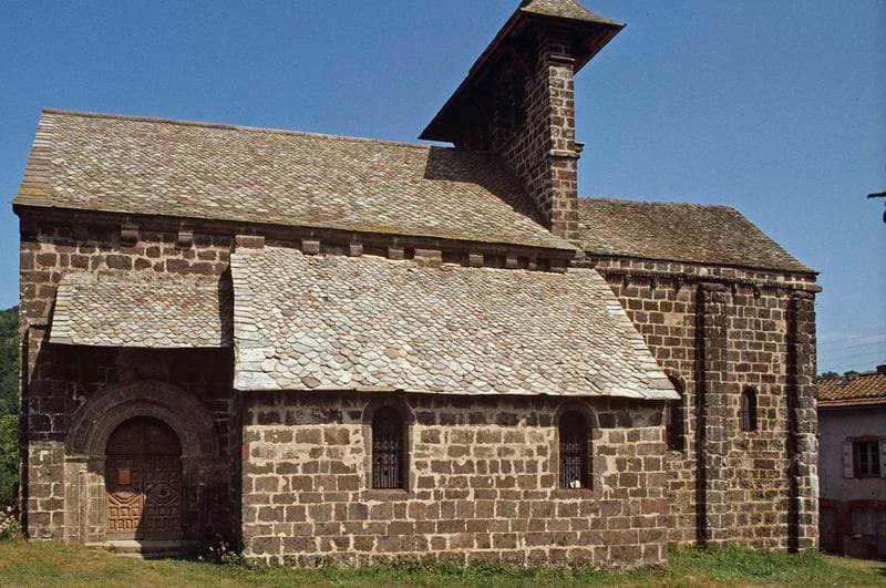 L'église était un prieuré qui dépendait de l'abbaye de Saint-Géraud d'Aurillac. Les religieux de Saint-Géraud la construisirent au 12e siècle. Nef unique voûtée en berceau renforcé par deux doubleaux, choeur plus étroit voûté de même, et abside circulaire à l'intérieur, couverte par un cul-de-four, mais terminée à l'extérieur par un chevet plat, dispositif d'origine provençale. Aux 14e et 15e siècles, deux petites chapelles ont été rajoutées de chaque côté de la nef. Sur le portail, seuls le cordon d'archivolte et le bandeau d'imposte sont ornés d'entrelacs et de billettes. A l'intérieur, les chapiteaux des colonnettes du choeur et de l'abside sont sculptés.