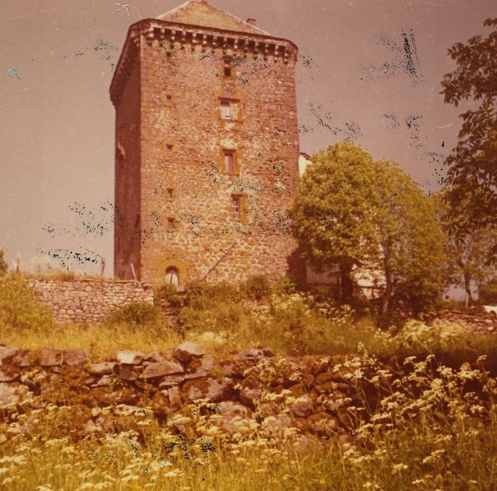 Construction caractéristique de l'architecture militaire de la fin du Moyen Age en Haute-Auvergne. Vestige d'un ensemble plus important, ce donjon rectangulaire aux murs très épais, aux rares ouvertures étroites et à la toiture couronnée de mâchicoulis, a conservé l'essentiel de ses dispositions d'origine. L'intérieur, constitué d'une pièce unique par niveau, présente des éléments de décor authentiques (cheminées monumentales moulurées).