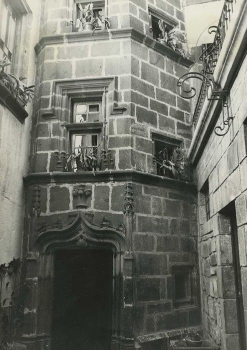 Le porche d'entrée donne accès à un passage couvert ouvrant sur une cour intérieure au fond de laquelle fait saillie une tour à pans coupés de la fin du 15e siècle, renfermant un escalier à vis Renaissance desservant les étages. Cette tour appartenait à l'hôtel de Nubien, nom de la famille qui l'occupait. Au rez-de-chaussée s'ouvre la porte d'entrée dont le linteau en accolade chargé d'un petit cartouche et les piedroits sont moulurés dans l'intervalle de cavets, de deux tores posés sur bases prismatiques. Le long des piedroits sont posés des pilastres supportant des pinacles à crochets à la partie inférieure desquels retombe en pénétration la moulure en larmier d'une accolade surmontant le linteau de même forme, décorée sur l'extérieur de feuilles de choux et amortie à sa pointe par un fleuron à trois branches. Cette tourelle possède, au-dessus de ce rez-de-chaussée, trois étages dont chacun est percé de deux fenêtres. Un cordon continu profilé d'un tore porté en saillie sur un cavet règne à chaque niveau en appui de ces fenêtres.