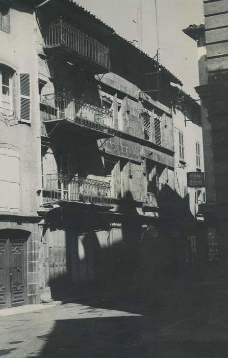 Maison du 16e siècle, comportant deux étages et galetas jumelés. Fenêtres à meneaux. Balcon en fer à l'extrémité.