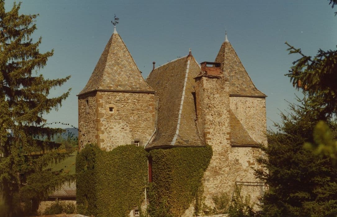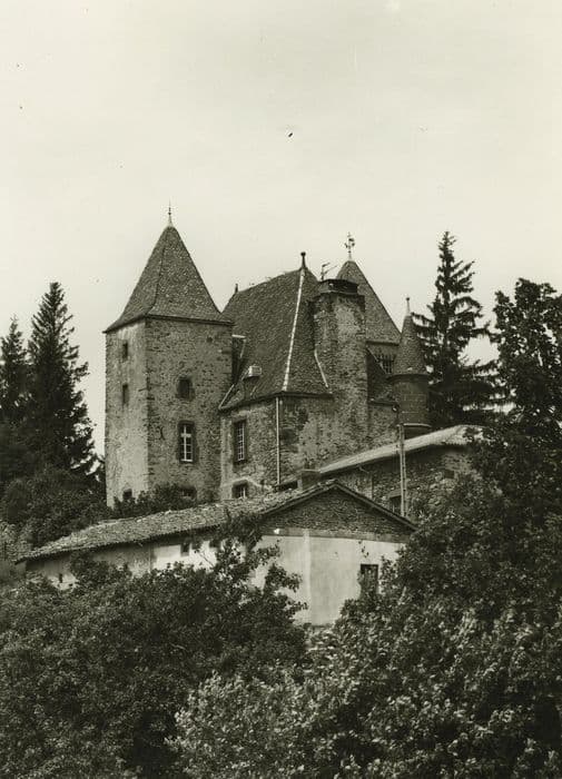 Première mention du fief en 1484. Edifié au 15e siècle, ce château se composait d'une tour carrée flanquée de quatre tourelles en cul-de-lampe dont ne subsiste que la tourelle à l'angle nord. Le château se présente comme un bâtiment rectangulaire de deux niveaux au-dessus des sous-sols. Deux tours carrées s'encastrent dans les façades sud-est et nord-ouest. L'une contient les habitations ; l'autre, étant celle de l'entrée principale, contient un escalier à vis. Au troisième niveau de cette dernière se trouvent trois consoles de mâchicoulis pouvant correspondre au vestige défensif de la porte principal. Au flanc nord-est s'accole un bâtiment utilitaire d'un rez-de-chaussée (écurie, grange...) à l'extrémité duquel un second édifice formant aile en retour, comprend le logement du gardien et une chapelle (1843).