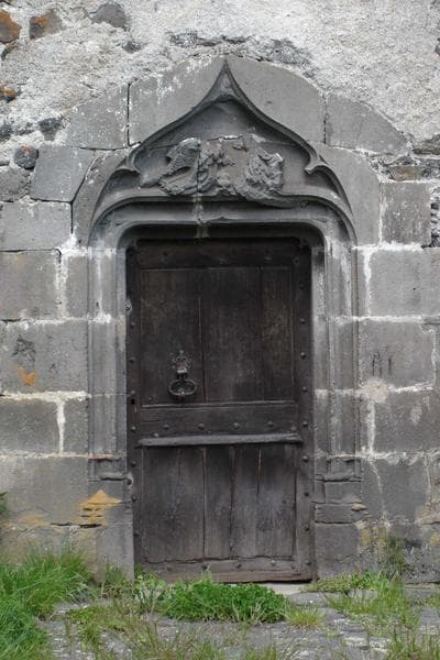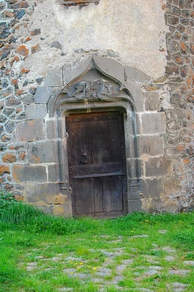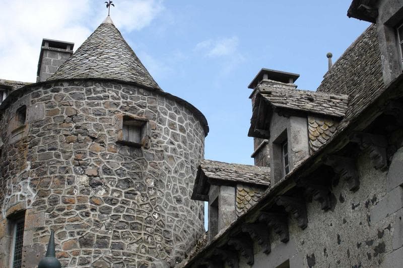 La seigneurie existe dès le 11e siècle, dépendant de la vicomté de Murat. Confisquée à J. de Nemours, décapité en 1477, donnée à Jean de L'Isle, elle est rendue au duc de Nemours par le roi. Elle échoit à Pierre de Bourbon mais, confisquée au connétable et annexée à la couronne, elle entre plusieurs fois dans l'apanage des reines douairières. En 1641, Louis XIII l'attribue à Honoré de Grimaldi. Au 11e siècle existait une forteresse beaucoup plus importante que l'actuel château, dont subsistent quelques fondations, détruite en 1360 par Jean Chandos, lieutenant du roi d'Angleterre. Le château actuel paraît avoir été construit au 16e siècle avec les matériaux de la forteresse et partiellement sur un élément de cette dernière, resté en place. Son plan est tel qu'à l'origine mais l'ensemble, à l'exception de la tour centrale (escalier) a été réduit d'un étage, sans doute au 18e siècle qui a vu la construction d'une aile et la mise en place de boiseries. La tour des archives, à l'arrière, a été rasée pendant la Révolution, époque probable du martellement de l'Annonciation du linteau de la porte de la tour centrale. Certaines fenêtres conservent des éléments de vitraux aux armes des Lastic (17e-18e siècle). La chambre du deuxième étage est ornée de papiers peints d'époque.