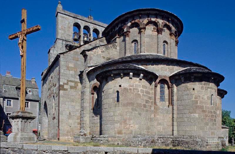 Le choeur appartient au 12e siècle. Il comporte un déambulatoire éclairé par d'étroites fenêtres placées entre les trois chapelles rayonnantes. Ce déambulatoire est couvert par un berceau recoupé par des doubleaux carrés retombant deux par deux sur les colonnes du choeur. La nef date du 14e siècle, et porte un clocher-arcade à quatre baies.