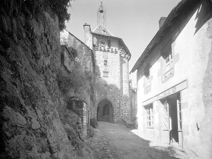 Sur une porte voûtée en ogive, appelée aussi porte Ste-Anne, s'élève une tour carrée sur laquelle s'appuie, à droite, une tour ronde. Des mâchicoulis et des corbeaux, puis une toiture surmontée d'un ouvrage en ferronnerie la terminent. La partie inférieure pourrait dater du 14e siècle.
