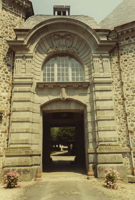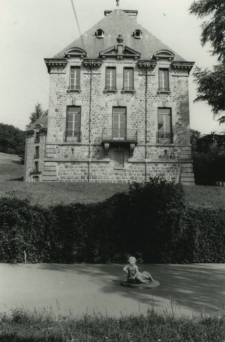 Château mentionné dès le 10e siècle. L'édifice du début du 19e siècle présente un pavillon carré couronné de mâchicoulis, devant constituer la partie médiévale du château (14e - 15e siècle) , un corps de logis disposé en biais (17e) avec une tour d'angle à toiture en poivrière, et, entre les deux bâtiments, servant de liaison entre eux et le porche d'entrée, un corps de bâtiment étroit dont la façade était percée d'un portail et d'une fenêtre à meneaux et ornée de deux échauguettes à toiture en poivrière (15e - 16e siècle). En 1898-1899, le château est reconstruit par l'architecte Viee qui conserve les fondations des pavillons mais remplaça celles du porche pour élever un porche monumental. Ce dernier est conçu sur un plan centré, circulaire à l'intérieur et carré à l'extérieur, couvert d'un toit à l'impérial surmonté d'un faux lanternon adoptant la forme d'un portique de style antique. Les deux façades sont composées d'un grand portail entouré de larges pilastres à bossage et au second niveau d'un fronton cintré surmontant une baie cintrée à voussures concaves. A l'intérieur, le porche est surmonté d'une coupole dont le tambour est percé de grandes baies garnies de vitraux géométriques signés Pompey. Le premier niveau est entouré d'une galerie aux murs ornés d'un décor floral au pochoir. La coupole est ornée d'une rosace en céramique colorée. Les pièces sont couvertes de boiseries, dont celles de la salle-à-manger dues à l'ébéniste Brousse. Le château est précédé d'un vaste parc traversé par une allée d'accès, avec un bassin semi-circulaire orné d'une sculpture en fonte composée d'une tête de dauphin entourée de roseaux et d'un enfant assis dans une coquille. A l'arrière, l'aménagement primitif des parterres n'a pas été entièrement réalisé ; au bout de l'allée, une orangerie de plan carré masque une partie des communs situés dans le prolongement nord.