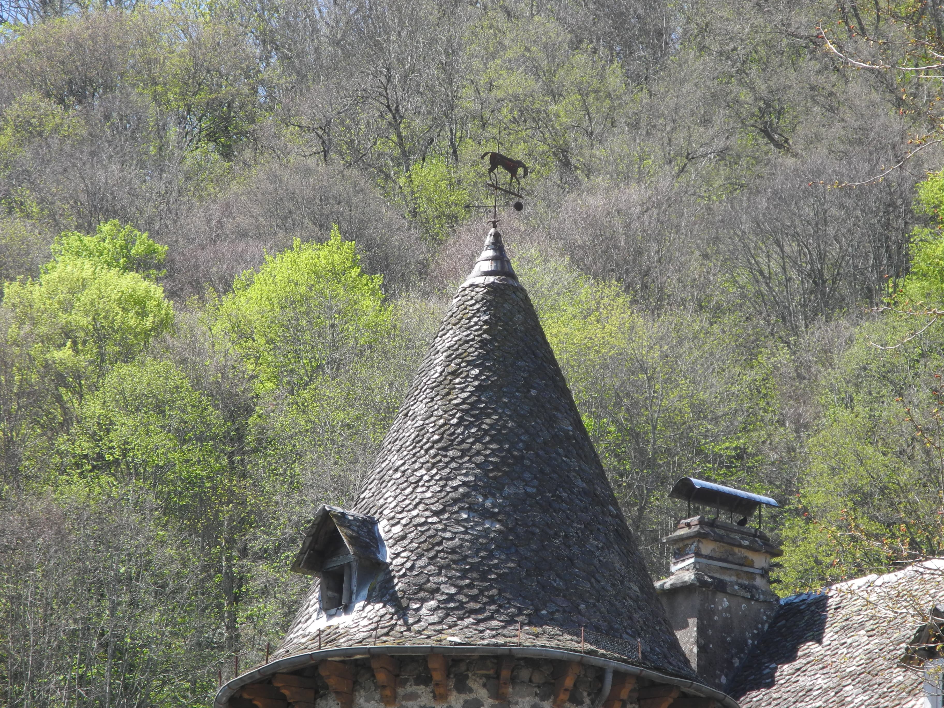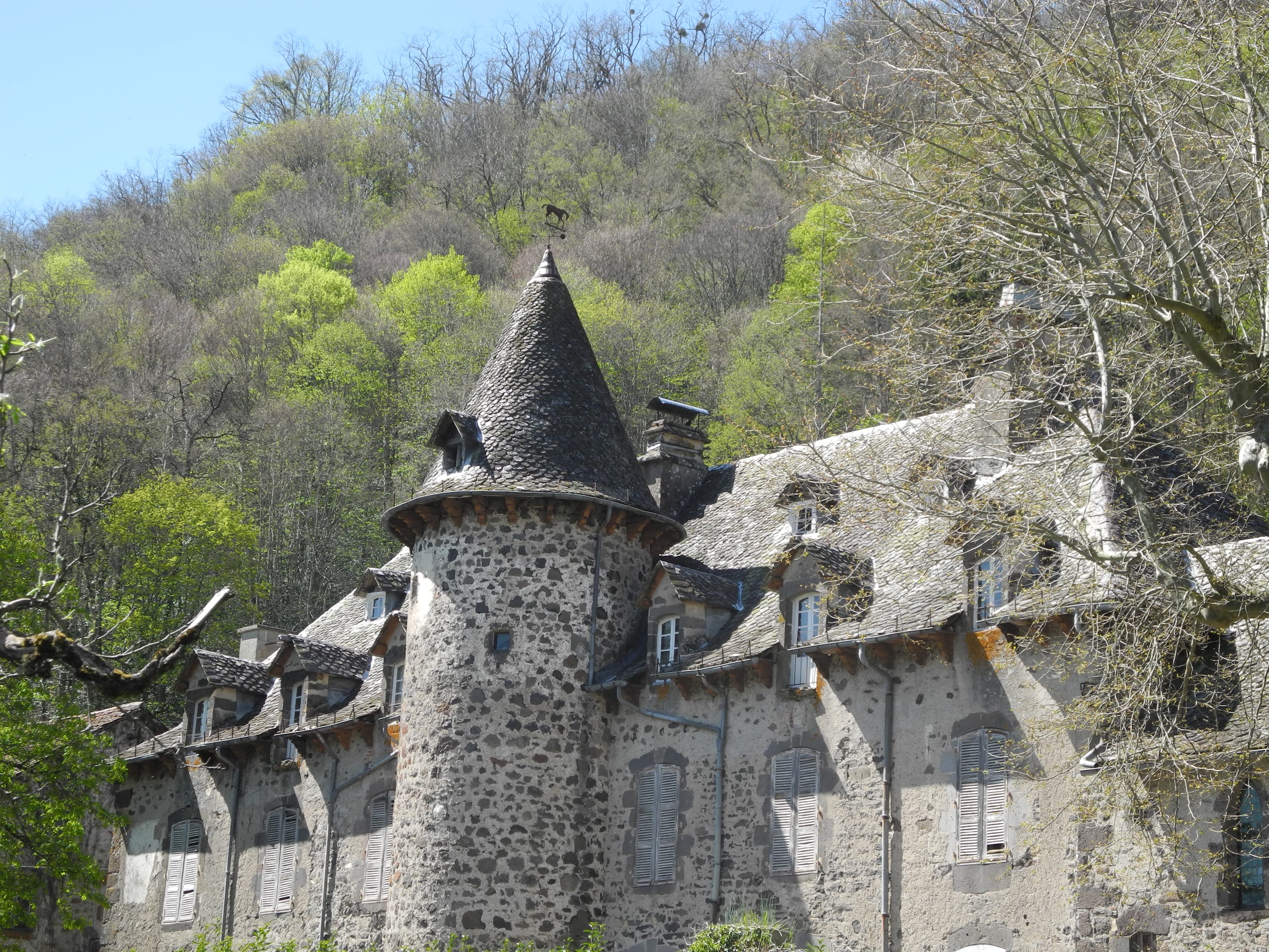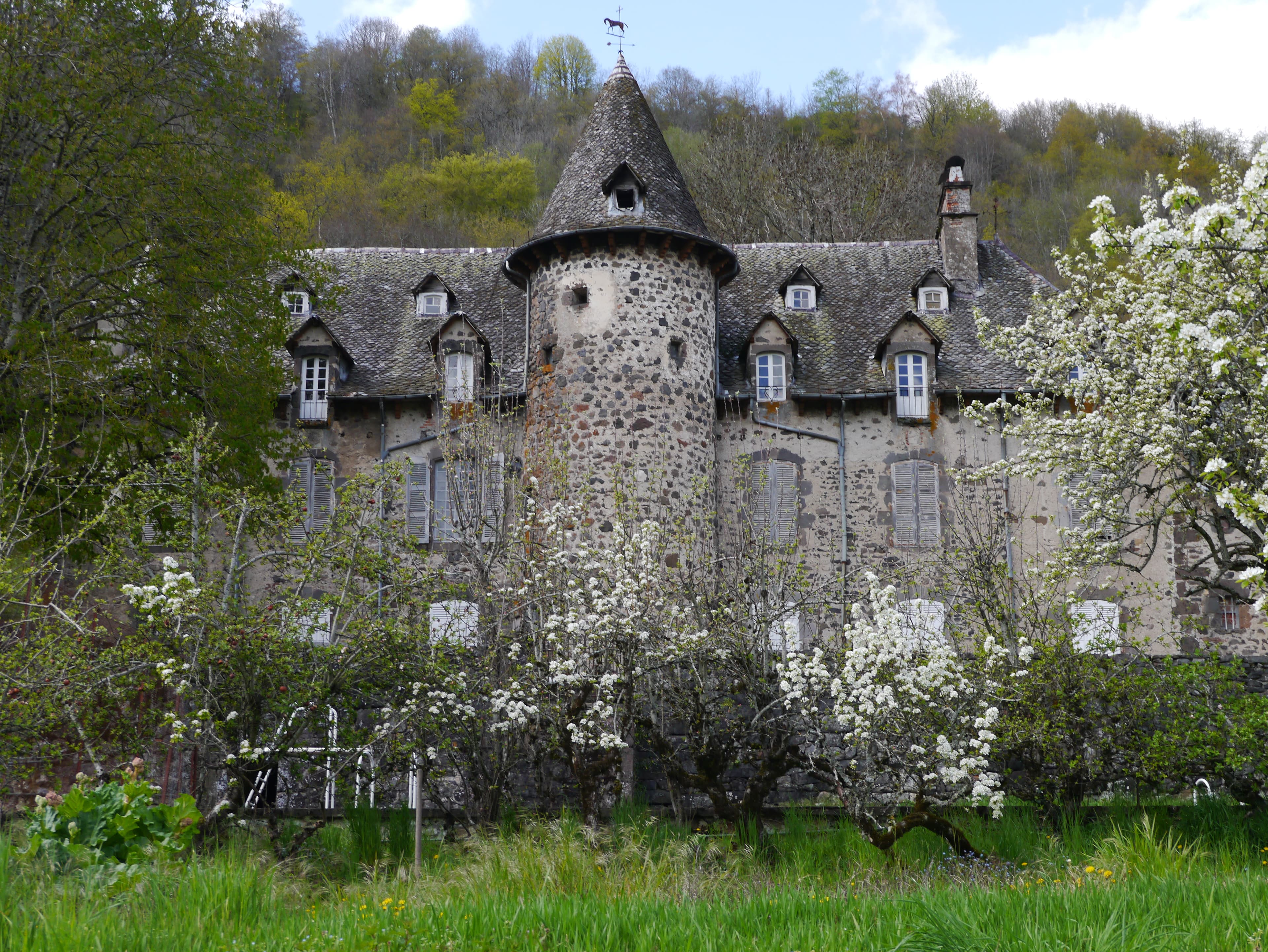 Le fief est mentionné pour la première fois en 1310. Typique des châteaux cantaliens agrandis à plusieurs reprises, cet édifice a une origine ancienne attestée par la tourelle d'escalier (15e ou 16e siècle) et une porte à arc en accolade. L'essentiel date cependant du 18e siècle (reconstruction entre 1722 et 1732). En 1730, autorisation est donnée pour la construction de la chapelle. Endommagé à la Révolution, le château est réaménagé au 19e siècle. Le plan présente un corps oblong flanqué au sud par son milieu d'une tourelle d'escalier circulaire demi-hors-oeuvre, et sur l'angle nord-ouest par une tour circulaire presque hors-oeuvre. A l'est, l'aile de la chapelle fut construite dans le prolongement du corps principal. Vers 1840-1850, les jardins sont tracés, avec allées, cour, platanes et terrasses. A l'intérieur, des décors originaux ont été aménagés au 18e et au 19e siècle, en particulier dans la chapelle qui réutilise des éléments du 17e siècle dans des lambris du 18e.