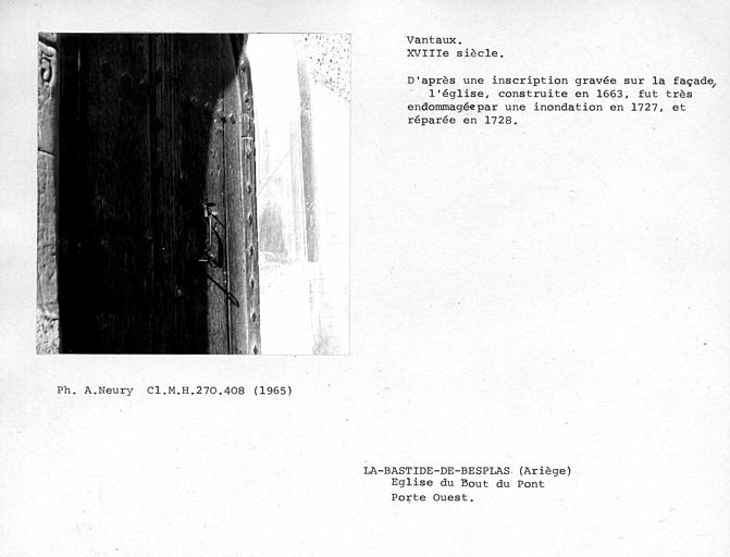 © Monuments historiques, 1992. Cette notice reprend intégralement les termes de l’arrêté de protection au titre des Monuments historiques. Elle répond à l’obligation réglementaire du ministère de la Culture d’établir la liste générale des immeubles protégés (art. R. 621-80 du Code du patrimoine). Elle est donc opposable et fait foi juridiquement. Aucune copie numérique ou papier ne sera fournie par courrier ni courriel. Le dossier de protection complet et l’arrêté sont consultables uniquement sur place, dans la salle de lecture de la Médiathèque du patrimoine et de la photographie (MPP), à Charenton-le-Pont (Val-de-Marne).