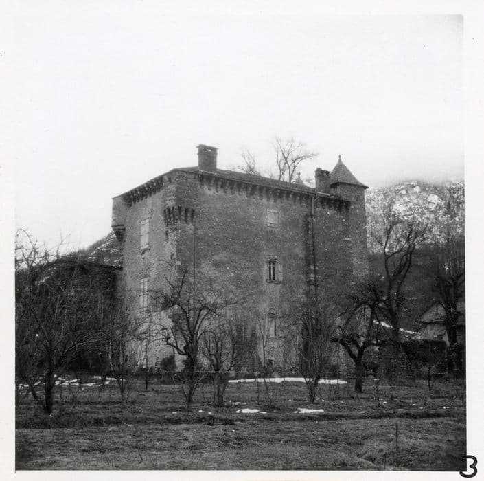 Le château actuel, remanié sous la Restauration, conserve intactes les deux façades nord et ouest datables du 15e siècle. La façade sud, remaniée sous la Restauration, présente un avant-corps plaqué sur le bâtiment du 15e siècle, exemple curieux d'une architecture rustique locale. Il s'agit d'une façade à trois étages flanquée de deux tourelles-pigeonniers avec toiture à quatre pans recouverte d'ardoises taillées en écaille. Le bâtiment du 15e siècle est constitué par le quadrilatère visible depuis l'angle nord-ouest du château. Il est souligné par un rang de corbeaux qui soutiennent la toiture, et par deux échauguettes, l'une carrée sur corbeaux, l'autre circulaire en cul de lampe. A l'intérieur, l'escalier se développe sur trois étages, avec un plafond à la française à la peinture gris clair à liseret rouge.