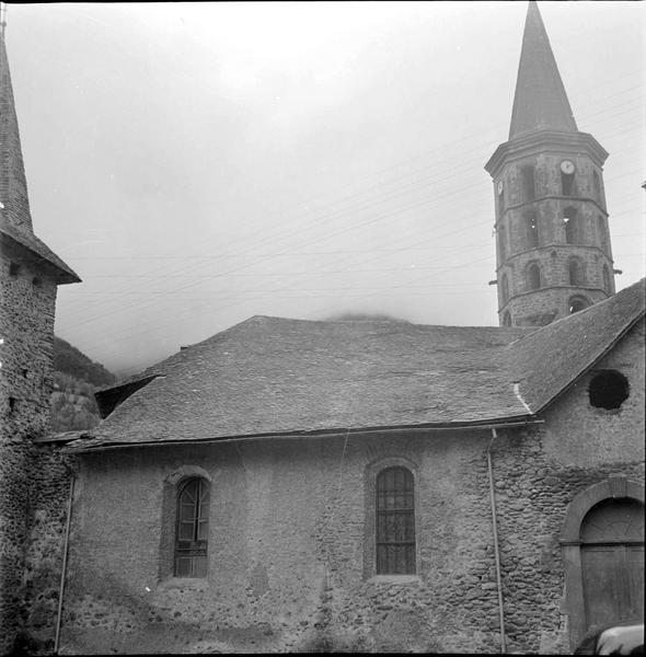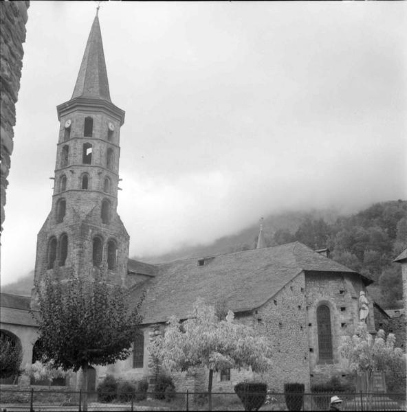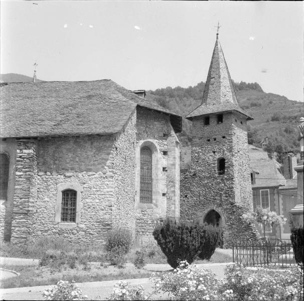 L'église possédait autrefois une enceinte fortifiée du 13e siècle dont il ne subsiste plus que deux tours sur les cinq qui la flanquaient. Une seule entrée existait à cette enceinte, s'ouvrant sur la tour nord. Le clocher représente tout ce qui reste des constructions du 12e siècle, auquel appartenait l'ancienne église. Les deux derniers étages de ce clocher sont du 18e siècle. La partie inférieure, carrée à la base, comprend deux étages carrés, puis passe à l'octogone et est couronnée d'un bandeau portant huit gargouilles semblant indiquer que là s'arrêtait la construction primitive. L'étage octogone date peut-être du 13e siècle. Les baies sont cantonnées de colonnettes.