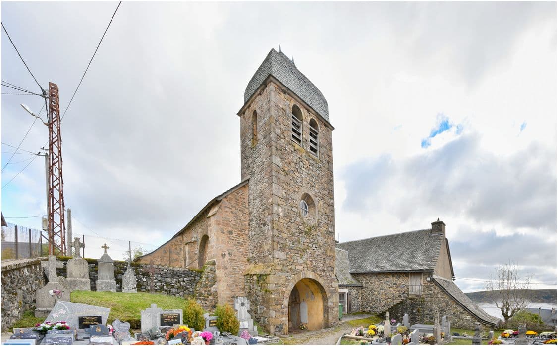 Eglise donnée à l'abbaye de la Chaise-Dieu. Le baron d'Aurelle en était seigneur haut justicier. L'édifice appartient au style roman. Deux chapelles ajoutées postérieurement forment le transept et donnent à l'édifice la forme d'une croix latine. Le clocher carré a été construit au 18e siècle. Chevet pentagonal. Chapiteaux romans.