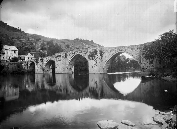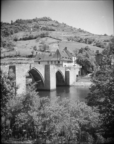 Ancien pont de cinq arches franchissant la Truyère, pouvant dater du 14e siècle. Les piles ont un be c du côté de l'amont, et les arches sont à double rouleau. Ce pont médiéval est l'un des rares à avoir survécu en Aveyron.
