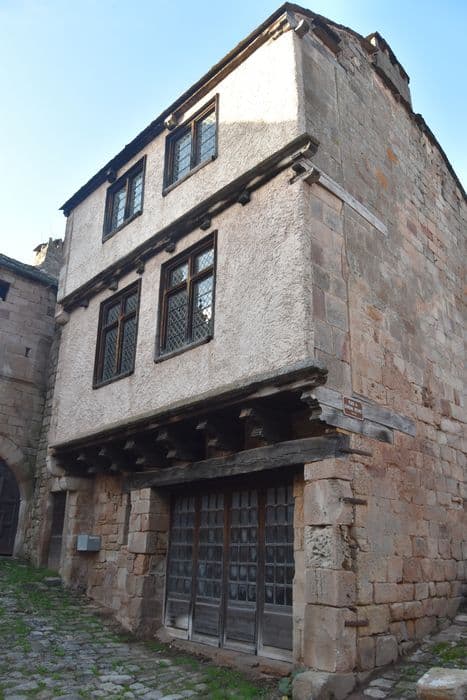 L'appareil semble révéler deux périodes de construction dans la façade. La partie gauche conserve une fenêtre géminée à colonnette centrale ; les deux arcs presque plein cintre sont ornés d'un trilobe. Sous cette fenêtre se voit la trace d'une baie rectangulaire murée. Sur la partie droite, une baie a perdu ses meneaux et a été agrandie dans le bas avec l'adjonction d'un balcon. Au-dessous s'ouvre la porte principale, en ogive. A sa gauche, une autre porte ouverte probablement au 16e siècle.