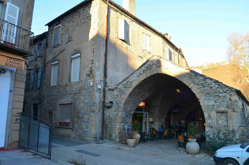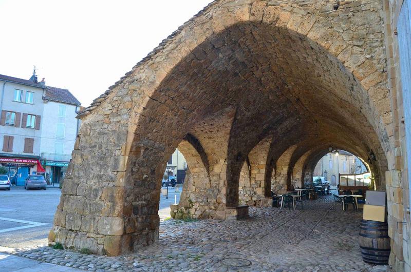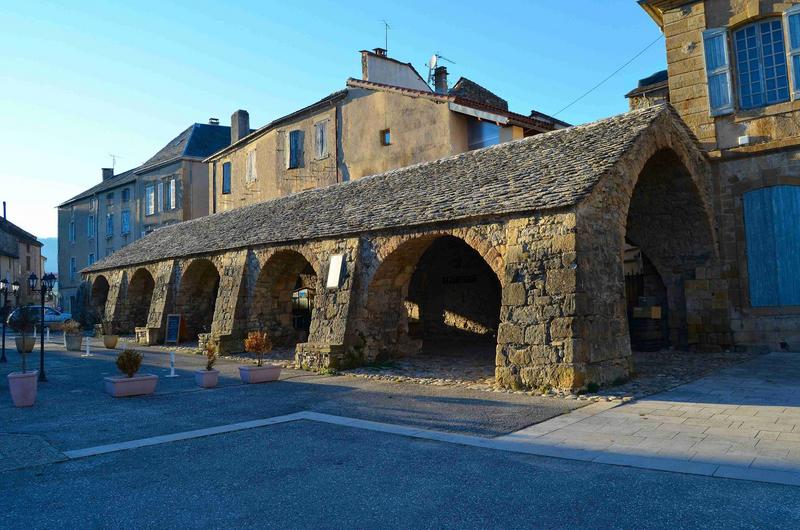 Les halles sont constituées par cinq travées de voûtes d'arêtes et forment une sorte de promenoir couvert. Les voûtes supportent directement une couverture de lauzes. Des contreforts maintiennent la poussée des voûtes.