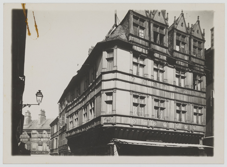Maison ayant appartenu à de riches bourgeois de la ville. Baies avec moulurations anciennes (fenêtres à meneaux verticaux et horizontaux). De grands bandeaux courent le long de la façade. Pans de bois à l'étage.
