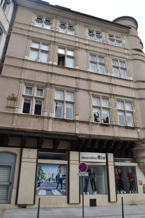 L'immeuble oppose deux façades sur la place, en trois étages superposées, complétées à l'angle par une tourelle en poivrière, percée d'ouvertures à fronton et terminée à la base par un cul-de-lampe cannelé. Les étages sont séparés par une triple corniche et percés de doubles fenêtres à meneaux de bois et aux moulurations de type Renaissance (pilastres à chapiteaux doriques, puis ioniques, et corinthiens au troisième étage). La base de la tour, entre le cul-de-lampe et la première fenêtre, est ornée d'une sculpture dans la pierre représentant l'Annonciation.