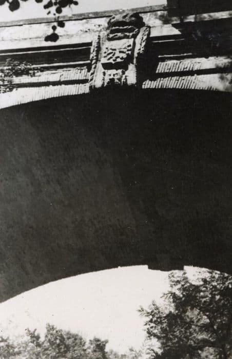 Arche de brique unique avec à la clef, de chaque côté, un écusson aux armes des états du Languedoc.