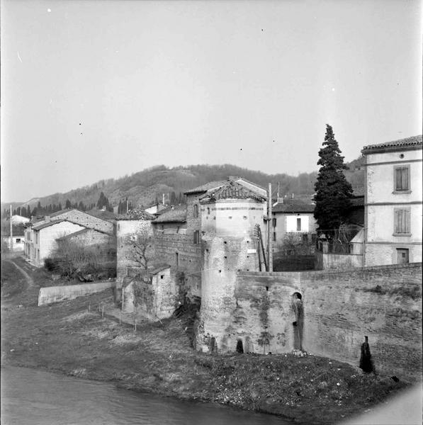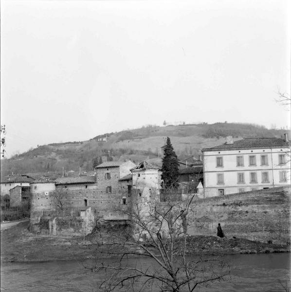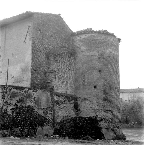 Construction en brique, épaulée aux angles du côté de la rivière, par deux tours circulaires dont l'une porte une construction hexagonale abritant un pigeonnier.