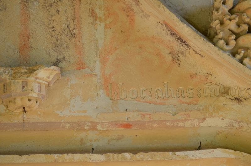 Aucun renseignement précis n'a été trouvé concernant la chapelle. Le portail est encadré de chaque côté par cinq colonnettes cannelées à bases moulurées. Trois de ces colonnettes trouvent leur couronnement dans l'arc en anse de panier qui coiffe le portail. Chacune des deux colonnettes extérieures se continue par deux pinacles dont le plus élevé se termine à la hauteur de l'extrémité supérieure du gâble. Les deux branches de l'accolade du gâble sont décorées de feuillages. Entre le gâble et le pinacle droit se trouve un buste en haut-relief représentant un personnage euphorique non vêtu.