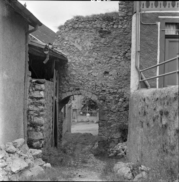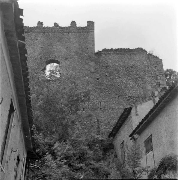 Le village faisait partie de la châtellenie de Fronsac et possédait un châtau fort. La construction de ce château semble dater de la fin du 13e ou du début du 14e siècle. Les murailles en moëllons irréguliers sont renforcées par des chaînes en blocs de granit appareillés. Des blocs de même type encadrent les meurtrières. A la partie centrale de la façade sud, un mur rectangulaire, couronné d'un crénelage, domine la courtine. La courtine sud se prolonge vers l'est pour aboutir à une poterne. Les autres côtés de l'enceinte ont dû servir de carrière pour les habitants du village. Comme la plupart des fortifications pyrénéennes de l'époque, le château ne possédait pas de tour d'angle.
