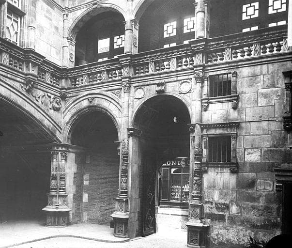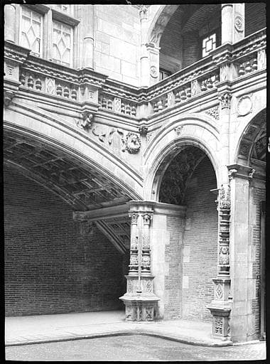 L'hôtel a été construit en deux campagnes. La façade sur rue remonte de la première (1503-1504) , encore gothique malgré quelques éléments décoratifs empruntés à l'Italie.