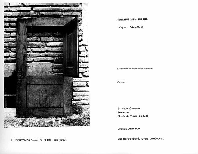 © Monuments historiques, 1992. Cette notice reprend intégralement les termes de l’arrêté de protection au titre des Monuments historiques. Elle répond à l’obligation réglementaire du ministère de la Culture d’établir la liste générale des immeubles protégés (art. R. 621-80 du Code du patrimoine). Elle est donc opposable et fait foi juridiquement. Aucune copie numérique ou papier ne sera fournie par courrier ni courriel. Le dossier de protection complet et l’arrêté sont consultables uniquement sur place, dans la salle de lecture de la Médiathèque du patrimoine et de la photographie (MPP), à Charenton-le-Pont (Val-de-Marne).