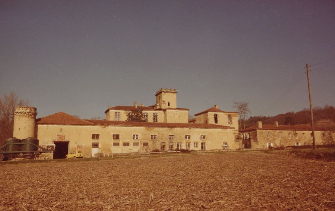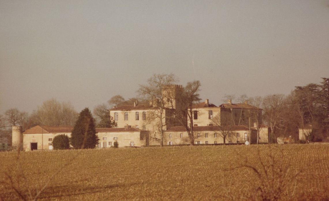Selon la légende, le château aurait été, à l'origine, une forteresse érigée contre les Anglais. Au 15e siècle, il fut donné à Jean de la Trémoille, archevêque d'Auch. Il fut probablement transformé, surtout au 17e siècle, par tous les archevêques d'Auch qui en avaient fait leur résidence d'été. Au 18e siècle, Monseigneur de Martillet y fit des aménagements luxueux. A la Révolution, il fut vendu comme bien national. Quelques transformations intérieures furent réalisées au 19e siècle. L'édifice comprend, dans un quadrilatère entouré de fossés, le château et deux bâtiments de communs. Le château s'articule autour d'une cour avec, au rez-de-chaussée, sur deux côtés, des arcades et des fenêtres rectangulaires aux étages. Un donjon domine à l'angle sud-ouest. A l'intérieur, le décor de la chapelle a été repris au 19e siècle ; les gypseries de la chambre de l'archevêque et du salon sont conservées.