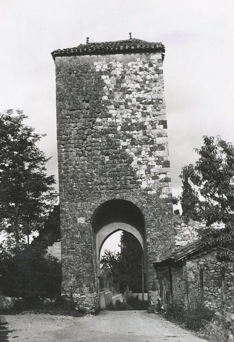 La tour est l'un des derniers vestiges des remparts du village, remontant sans doute au 15e siècle. Le rez-de-chaussée est conçu comme la quasi totalité des portes fortifiées des villages du Gers. La porte se bloquait du dedans par des barres trnasversales qui l'appuyaient contre un arc d'ouverture moindre que la voûte. L'accès au premier étage se faisait par un escalier de pierre, celui du second devait se faire par une échelle intérieure. Le toit est couvert de tuiles à canal alternant avec des tuiles plates à crochet.