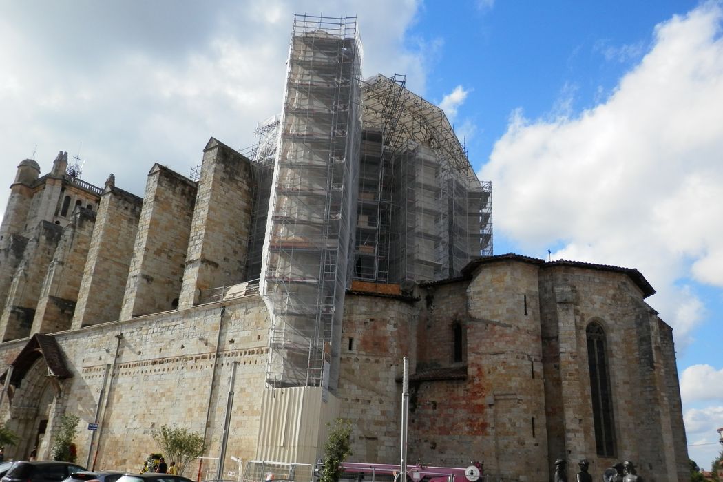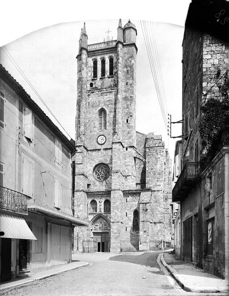 Un monastère bénédictin existait à l'origine. L'église primitive devait posséder un déambulatoire avec chapelles rayonnantes. En 1317, l'abbatiale fut érigée en cathédrale. En 1368, le monatère menaçait ruine. La reconstruction de l'ensemble épiscopal débuta en 1506. Une tour quadrangulaire occupe le centre de l'édifice. La façade occidentale s'ouvre par un portail gothique. En 1796, l'ensemble fut vendu comme bien national, puis racheté par la ville en 1861.