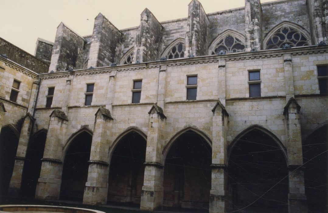 Cloître construit au début du 16e siècle, entre 1521 et 1544. Au 16e siècle, il est victime de pillages et est restauré au début du 17e siècle. Vendu comme bien national en 1796, il est transformé en écurie avant d'être racheté par la commune en 1861. Après réhabilitation, la ville y installe la mairie et divers services municipaux en 1883. La chapelle de l'évêque est construite dans le même style gothique finissant.
