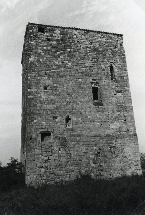 En 1279, le traité d'Amiens livre l'Agenais aux Anglais, d'où la nécessité d'établir des tours de guet de part et d'autre de la frontière. L'ouvrage est un bâtiment rectangulaire à trois étages séparés par des planchers, et un rez-de-chaussée. Le premier étage est percé d'archères, de fenêtres et d'armoires pratiquées dans le mur. Le troisième étage a conservé des baies en arc trilobé et des meurtrières. Les couronnements sont constitués par des merlons percés d'archères cruciformes. Au-dessous court une ligne de trous de boulin. L'accès au chemin de ronde se faisait par un escalier à vis partant du deuxième étage, et construit en encorbellement dans un angle de la tour. Une petite enceinte accompagnait cet ouvrage, qui était placé à l'un de ses angles.