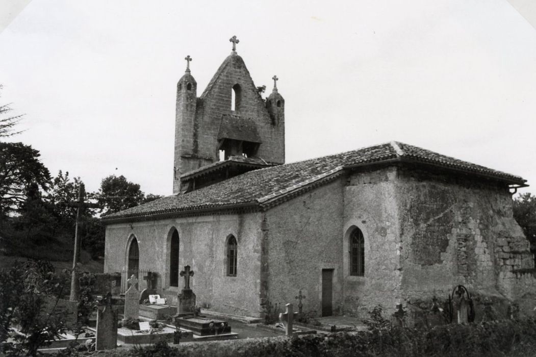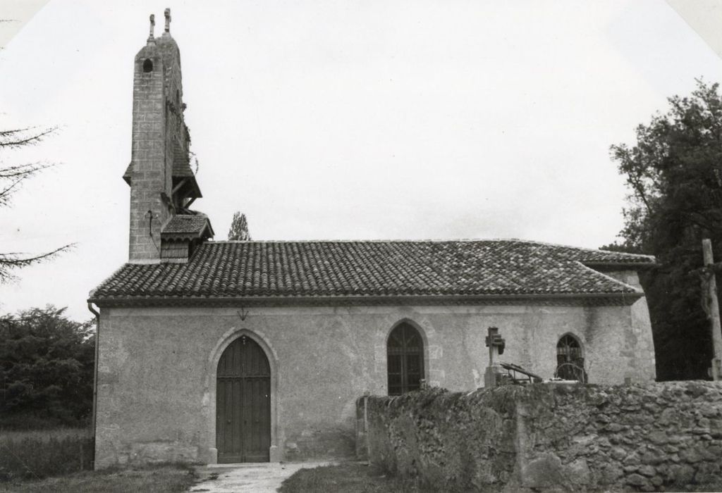 Il est fréquent, dans le Gers, de voir une église rurale bâtie près d'une motte féodale. Les empatements de mur à l'est et au nord rendent encore visibles les parties romanes de l'église. L'édifice roman devait être voûté en berceau. Une des chapelles daterait de 1665. Selon les croyances locales, la motte féodale à proximité renfermerait la tombe d'un chef gaulois enterré avec un trésor en pièces d'or.