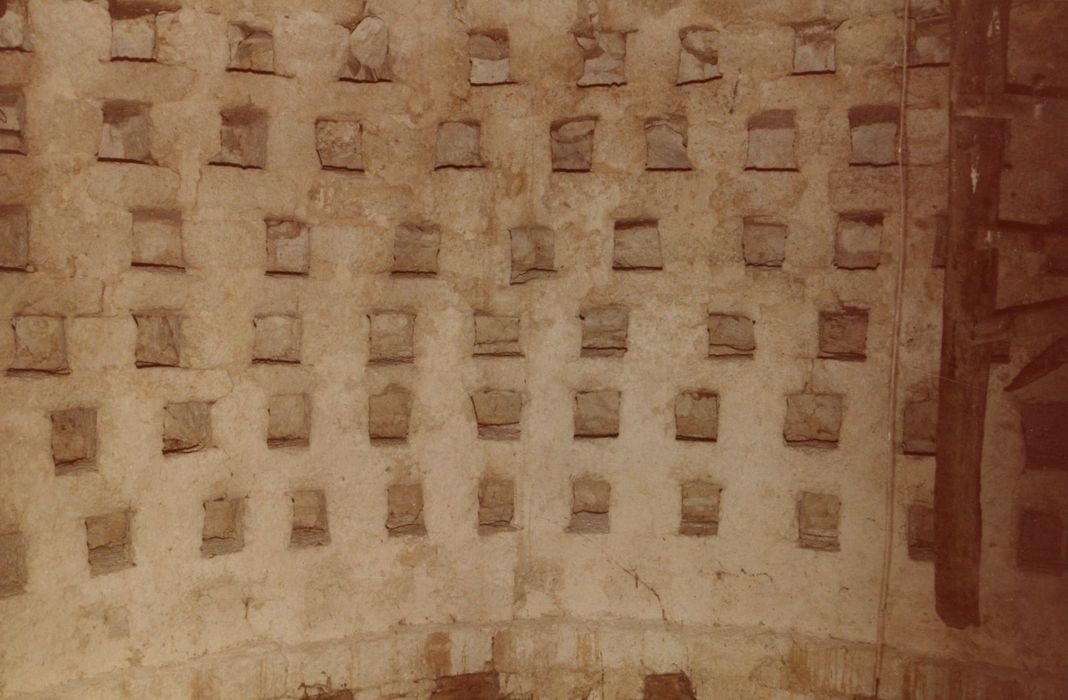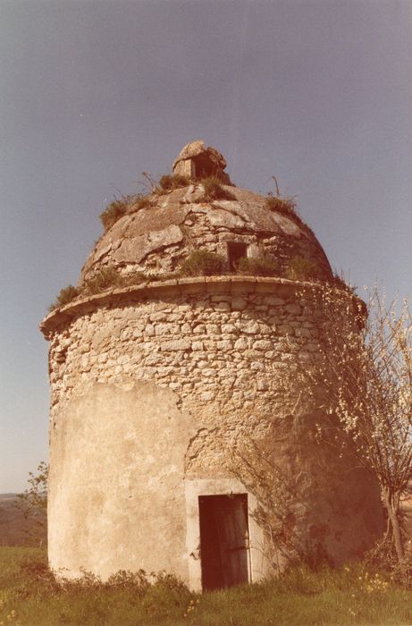 Pigeonnier cylindrique couvert d'une coupole hémisphérique qui s'élève au-dessus d'une corniche évidée. Un lanterneau couronne le dôme. Les murs intérieurs sont entièrement percés de boulins légèrement trapézoïdaux (400). Un larmier de pierre très saillant détourne les eaux de ruissellement des maçonneries et ferme l'accès aux rongeurs. Ce genre d'édifice voûté est assez rare.