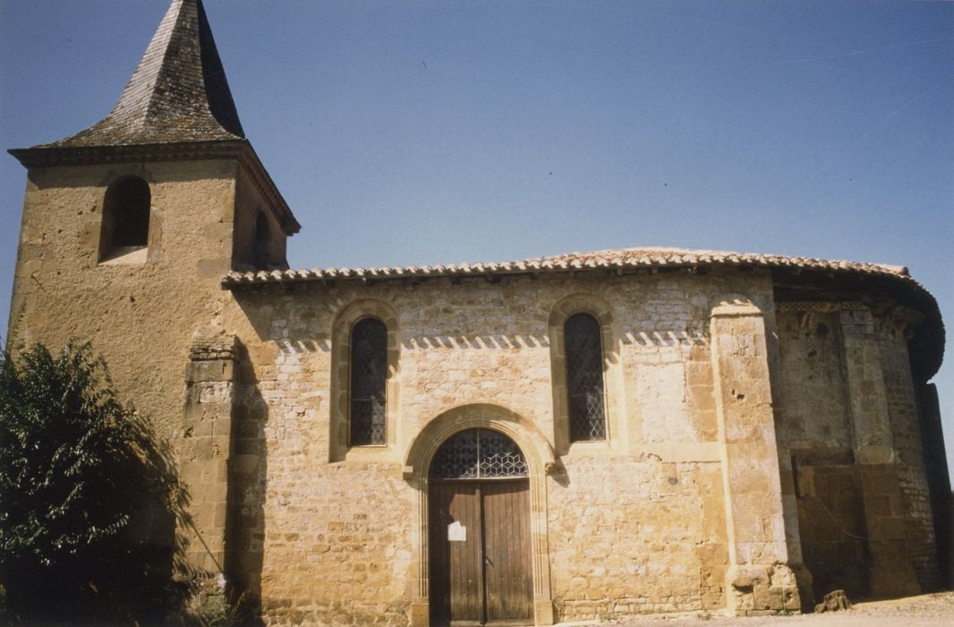L'église semble avoir eu des liens avec l'ancienne abbaye de Tasque. Datée de la fin du 11e siècle, elle fut défigurée pendant les guerres de Religion, puis restaurée au 17e siècle. L'entrée s'effectue par une porte plein cintre encadrée de deux fenêtres. Le chevet a conservé son abside principale et ses absidioles latérales en plein cintre. Clocher carré datant du 19e siècle. A l'intérieur, la sculpture des chapiteaux se décline sur différents thèmes : végétation ; animaux ; histoire religieuse.