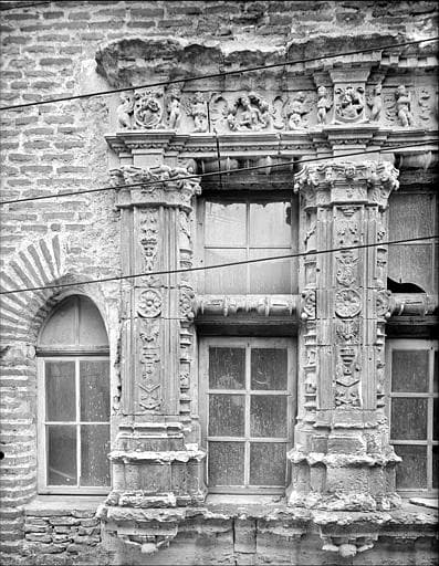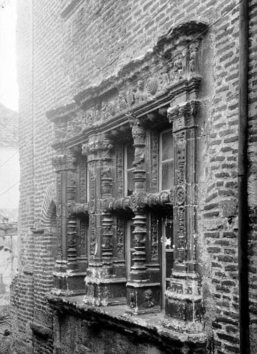 Cet édifice complet de la Renaissance, construit en briques, comportait à rez-de-chaussée de grandes arcades (murées) et au-dessus, deux groupes de fenêtres triples enrichies de sculptures. Le bâtiment prend jour sur une cour intérieure sur laquelle saillit un escalier en vis desservant à chaque palier les étages de la maison.