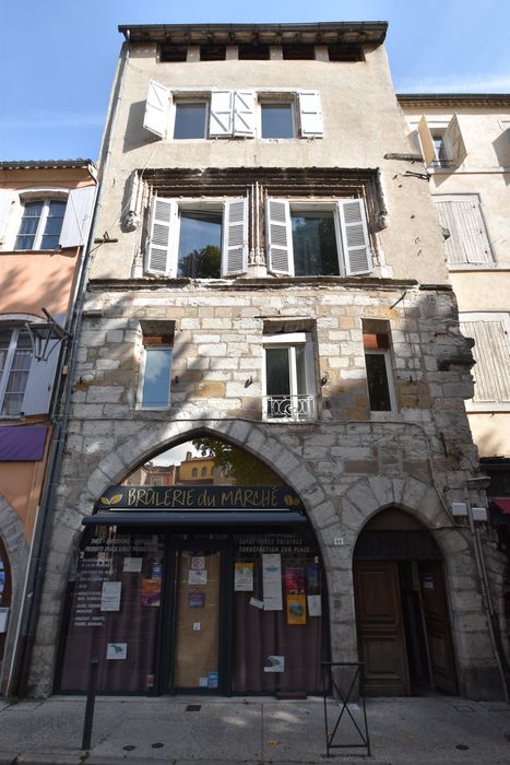 Le rez-de-chaussée et le premier étage sont construits en pierre. Le rez-de-chaussée s'ouvre par une porte avec arc en tiers-point. A côté subsiste l'arc également en tiers-point d'une ancienne boutique. Le deuxième étage est percé de deux grandes fenêtres jumelles du 15e sècle, dont les doubles meneaux ont été supprimés pour y placer des fenêtres modernes.
